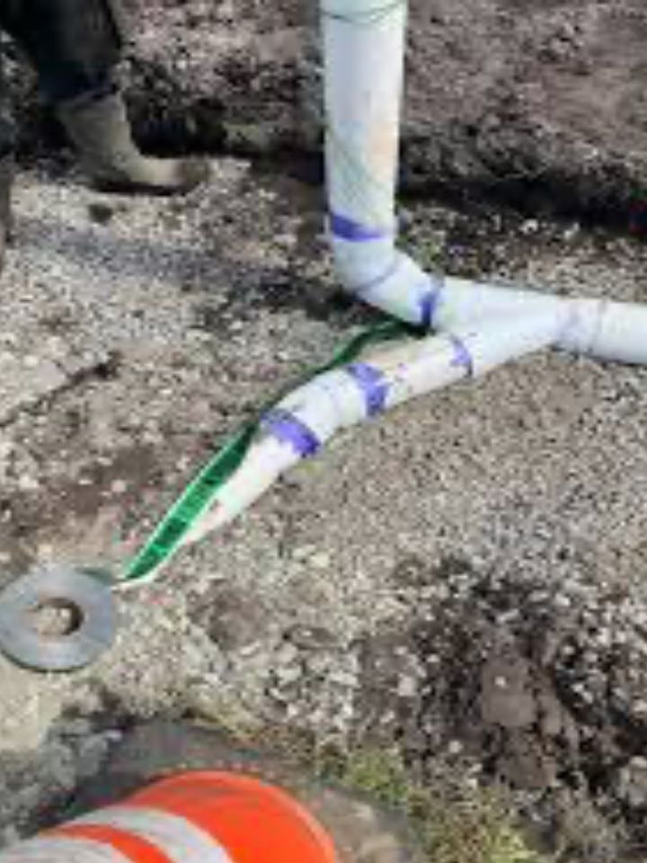 Work Performed: • Excavated area to expose damaged underground drain line • Cut out and removed damaged section of PVC piping • Installed new PVC wye fitting and piping to restore proper drainage flow • Properly solvent welded all fittings and connections • Tested drain line for leaks and proper operation • Backfilled excavation after successful testing • Cleaned up work area upon completion