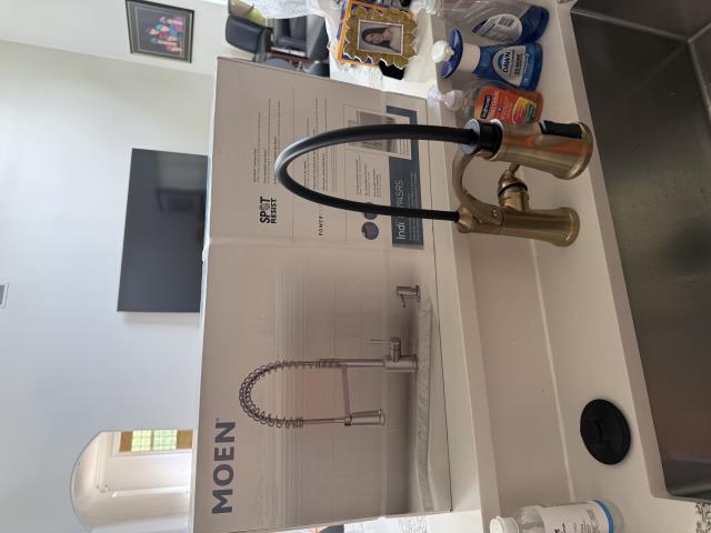 Installed a new Moen pull down kitchen faucet with a high arc spring design. Secure mounting and proper water connections completed. Tested for smooth operation proper spray function and no leaks.