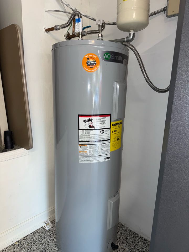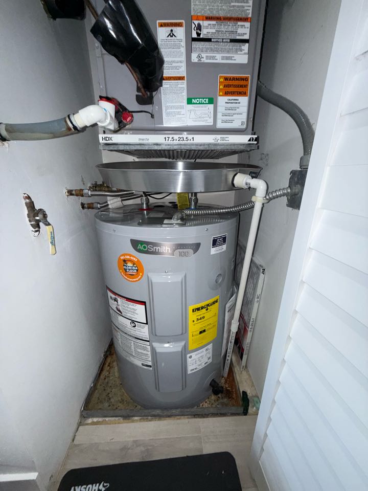 Work Performed: • Supplied and installed one new A.O. Smith 50-gallon U.S. electric hot water heater • Installed new two-pound thermal expansion tank • Connected new hot and cold water piping with all required fittings and materials • Made all necessary electrical and plumbing connections for proper operation • Tested system for safe operation and verified proper heating • Ensured installation meets manufacturer specifications • Six-year manufacturer warranty provided on the water heater • Cleaned up work area upon completion