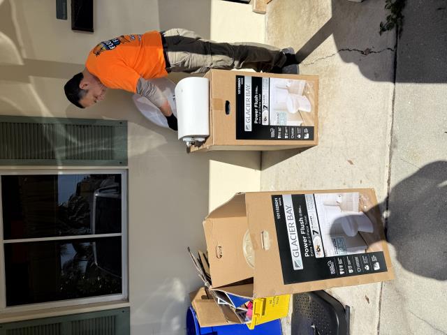 Scope of Work: Install customer supplied commodes tank and bowl (2) Remove and dispose of existing commodes tanks and bowls Install new tanks and bowls with new wax rings bolts and water supply lines Install 2 new toilet shut off valves Test for proper operation and ensure no leaks present