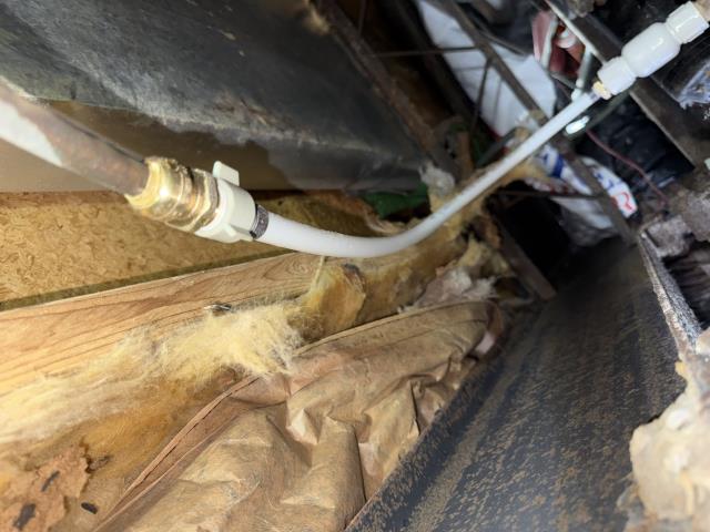 Work Performed: Excavated around exterior plumbing to expose damaged underground PVC water line. Cut out and removed leaking and compromised sections of pipe. Reconfigured and rebuilt piping using new PVC fittings and pipe to correct alignment and restore proper flow. Solvent welded all new connections and allowed proper cure time. Restored connection to existing exterior water line and hose bib assembly. Turned water back on and pressure tested repaired section to confirm no leaks. Backfilled excavation area and leveled surrounding ground. Cleaned up work area upon completion.