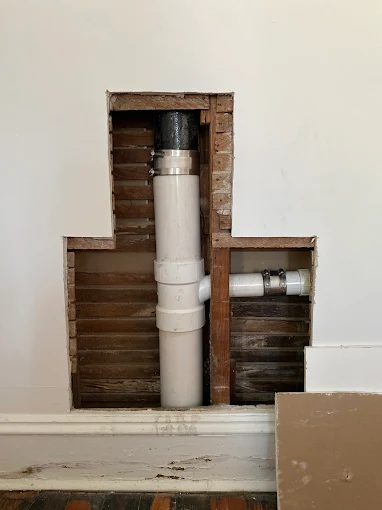 Work Performed: Opened wall to access damaged drain piping Removed section of existing drain line as needed Supplied and installed new PVC drain piping and fittings Installed new sanitary tee and properly connected branch line Secured piping and ensured proper alignment and slope Tested drain system for proper flow and ensured no leaks present Prepared area for wall closure and repair Cleaned up work area upon completion