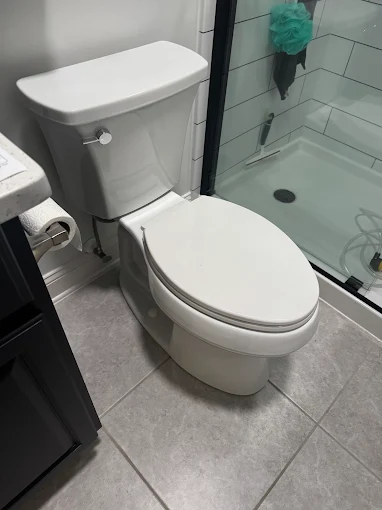 Work Performed: Supplied and professionally installed (1) new toilet Removed existing toilet and disposed of properly Installed new reinforced wax seal and closet bolts Set and secured toilet to flange ensuring proper alignment Installed new water supply line and connected to shutoff valve Sealed base of toilet for a clean finished appearance Tested for proper operation and ensured no leaks present Cleaned up work area upon completion