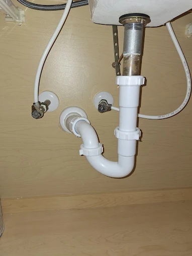 Work Performed: Removed existing under-sink drain components and outdated piping Supplied and installed new PVC P-trap assembly Installed new tailpiece extension and properly aligned drain connections Reconfigured drain piping to ensure proper slope and flow Secured all slip-joint connections with proper fittings and seals Inspected shut-off valves and supply lines for proper condition Ran water and tested drainage for proper flow and performance Checked all connections for leaks and ensured watertight seals Verified proper trap function to prevent sewer gas odors Cleaned up work area upon completion and removed all debris